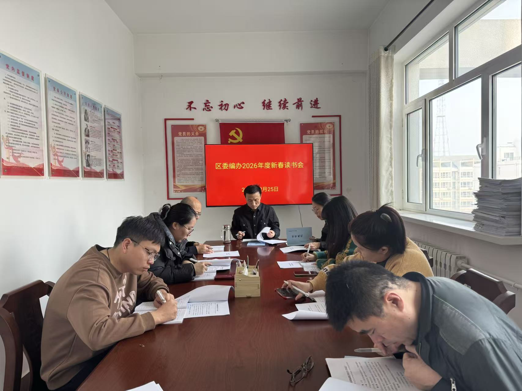2月25日,区委编办召开为期三天的新春读书会,本次读书会采取集中学习与自主学习相结合的方式,重点学习了中央和上级会议精神、法律法规、机构编制业务、意识形态、党风廉政建设、铸牢中华民族共同体意识等内容。